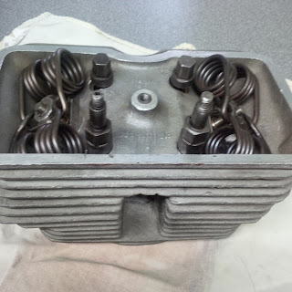 Stu Rogers has worked his magic on the head. Made and fitted custom phosphor bronze valve guides plus lapped in new correct valves and installed new hairpin springs all correctly machined. Great. Let the games begin.